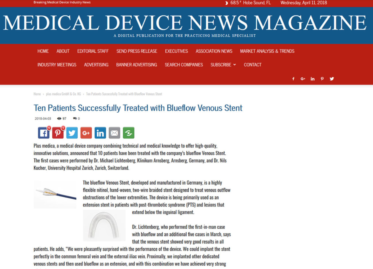 The blueflow Venous Stent was developed and produced in Germany in cooperation with leading international vein specialists.